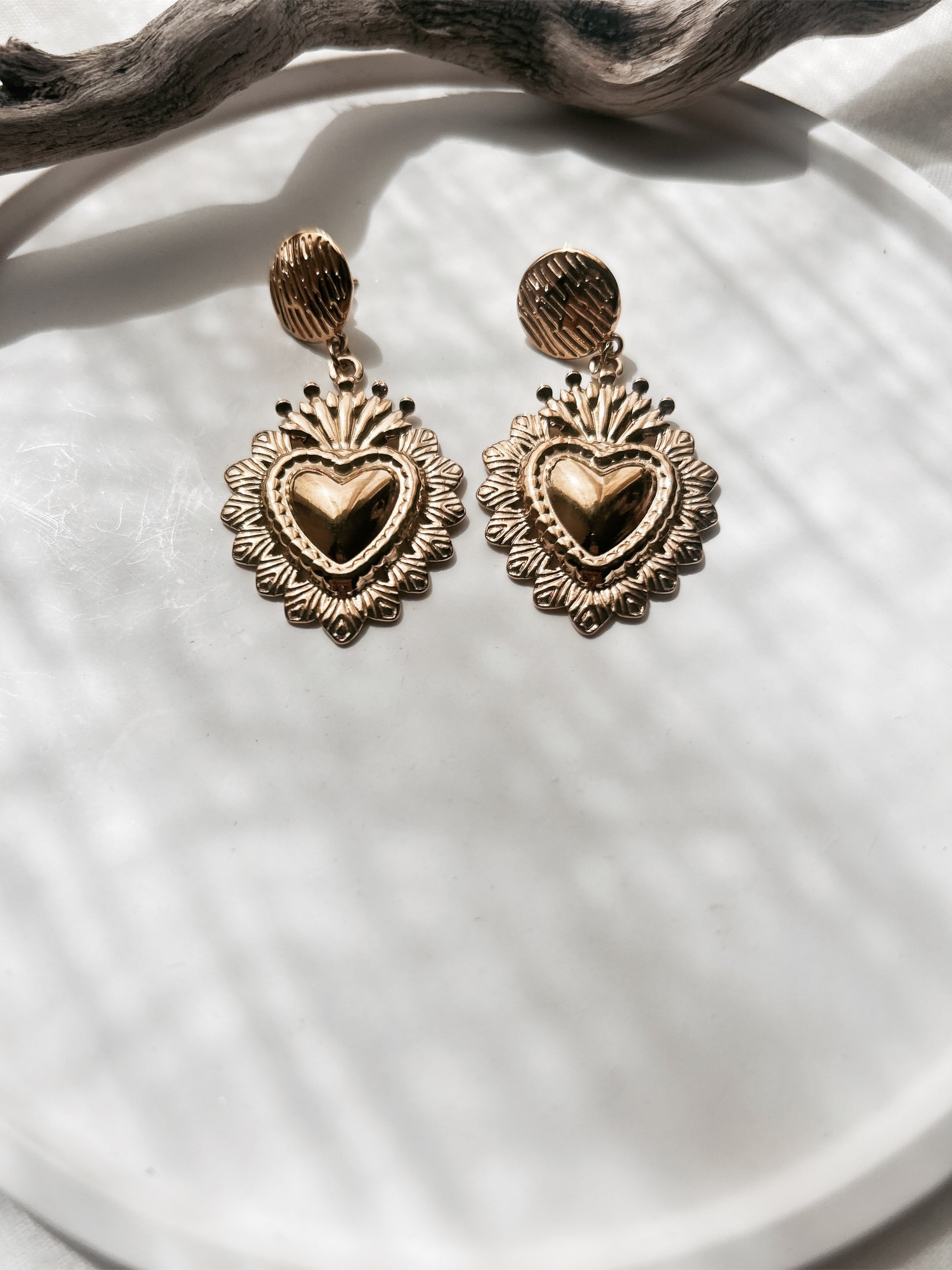 Sacré cœur – Boucles d’oreilles dorées baroques